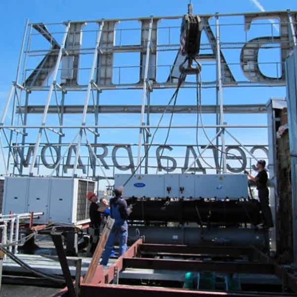 Выполнен демонтаж Pin-Up чиллера и градирни, осуществлена поставка и монтаж нового чиллера и градирни Carrier.